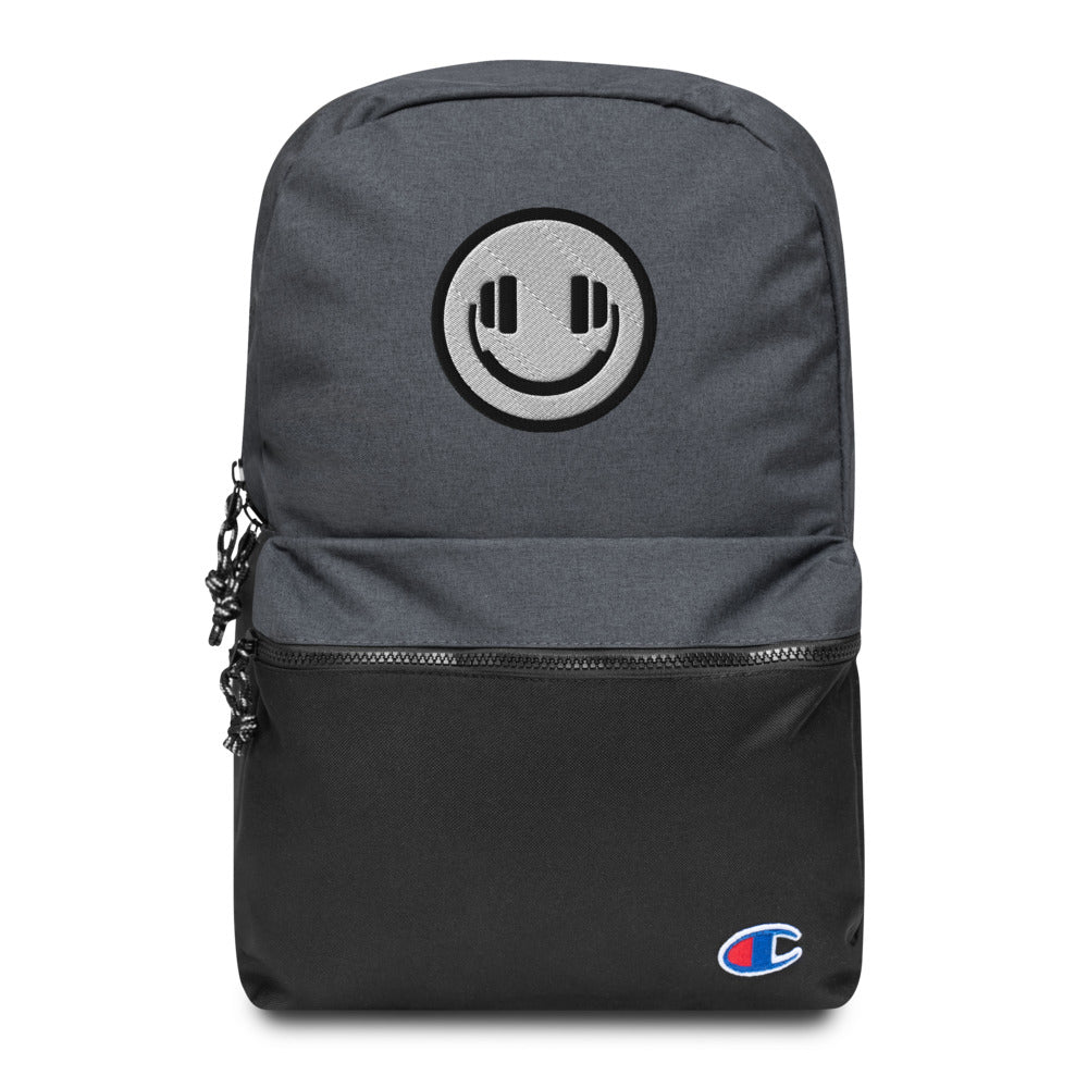 • Padded ergonomic polyester bag straps with plastic strap regulators and Champion brand label on the left strap